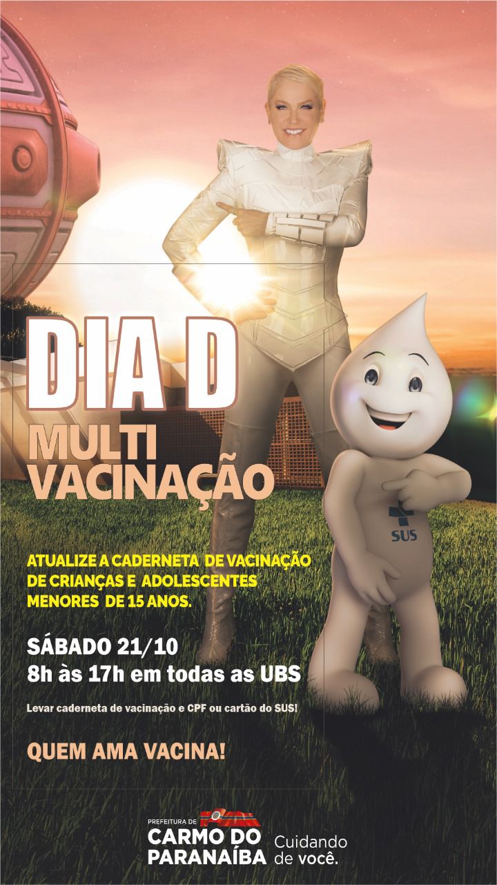 A prefeitura de Carmo do Paranaíba, através da Secretaria de Saúde comunica que o Dia D da Campanha Nacional de Multivacinação acontece no próximo sábado (21).