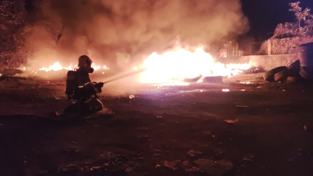 Cerca de 300 dos 500 pneus usados no local foram queimados. Todas as equipes de plantão do Corpo de Bombeiros foram acionadas para a retirada do material ainda não queimado para diminuir o combustível das chamas.