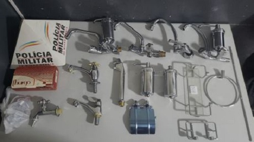 No local, os militares depararam com o dono na porta do estabelecimento, dentro de um veículo. Neste instante os militares visualizaram na caçamba do carro uma torneira nova, semelhante a um produto que foi furtado.