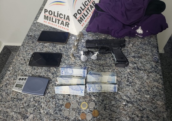 A Polícia Militar ainda localizou porções de droga e uma balança de precisão na casa de um dos suspeitos