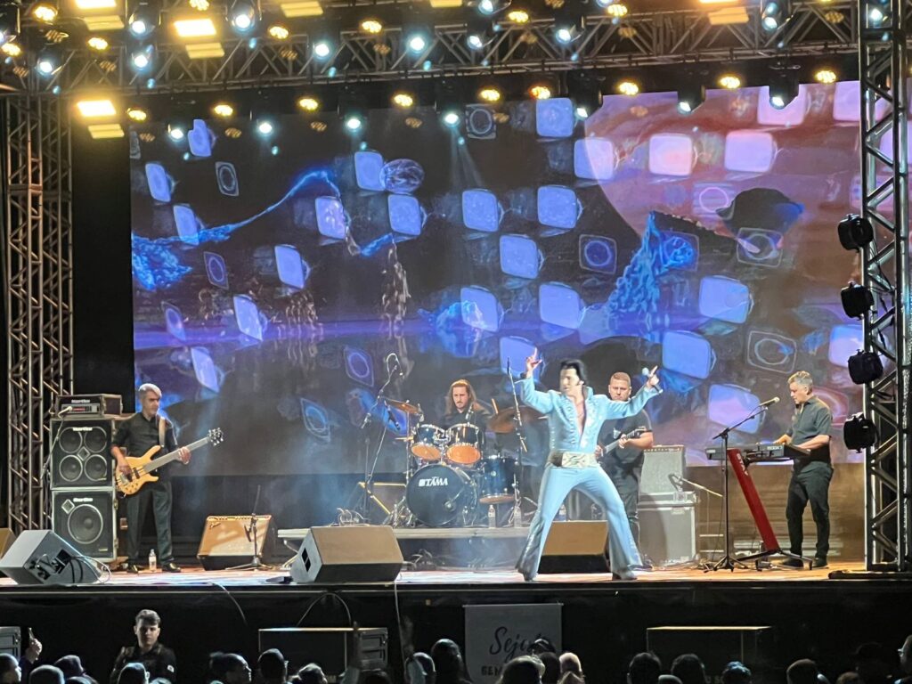 Renato Carlini, conhecido por sua impressionante semelhança vocal e visual com o Rei do Rock, levou o público a uma viagem no tempo, revivendo os maiores sucessos de Elvis. Com um figurino impecável e uma presença de palco cativante, Carlini emocionou a plateia com clássicos como “Suspicious Minds”, “Jailhouse Rock” e “Can’t Help Falling in Love”. A energia contagiante e a interação com o público fizeram da noite um verdadeiro espetáculo.