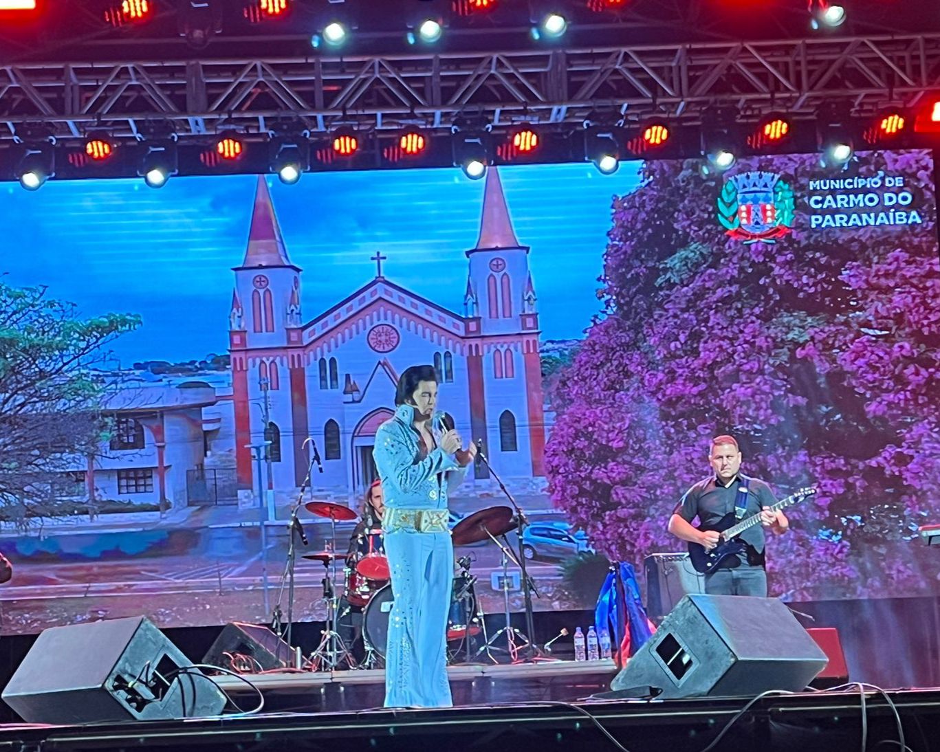 O Festival Cultural de Carmo do Paranaíba teve início nesta quinta-feira (25) na Praça do Rosário em uma noite inesquecível com a apresentação eletrizante de Renato Carlini, renomado cover de Elvis Presley. O evento, que reuniu centenas de pessoas, destacou-se não apenas pela performance de Carlini, mas também pelas apresentações da banda local Blue Stones e do grupo de teatro Akazu.