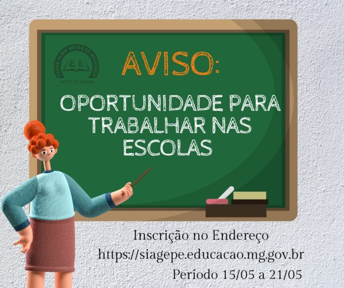 A Secretaria de Estado de Educação de Minas Gerais (SEE/MG) abrirá, no próximo dia 15 de maio, inscrições para convocação/contratação temporária para profissionais interessados em fazer parte do quadro das carreiras do Administrativo e do Magistério. As inscrições vão até o dia 21 de maio.
