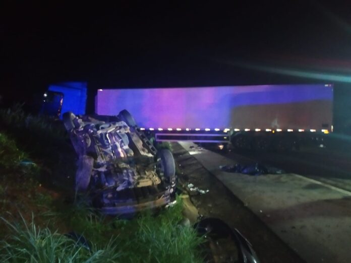 Conforme a PRF, três ocupantes do Corolla morreram no local: o motorista de 36 anos e duas passageiras de 26 e 42 anos. Uma mulher de 46 anos teve ferimentos graves e outra de 23 sofreu ferimentos leves. O condutor do caminhão também ficou levemente ferido. Já o motorista da carreta saiu ileso.