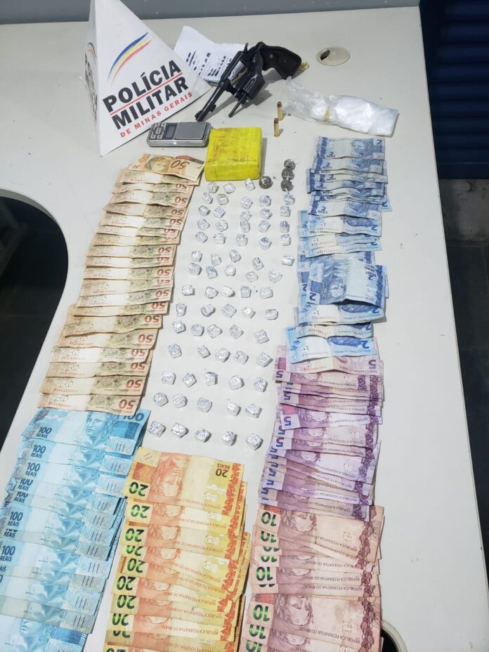 Por isso, foi foi realizada a abordagem e procedida a busca pessoal, sendo localizada uma porção de maconha embalada em papel alumínio. Em conversa com o suspeito, um rapaz de 22 anos, o jovem franqueou a entrada dos militares em seu imóvel, quando foram localizados na casa 1 revólver, droga, dinheiro e outros matérias relacionados ao tráfico.