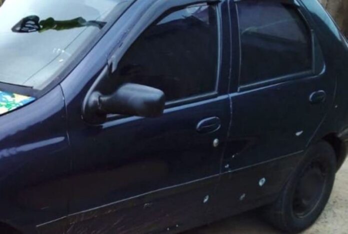 Em certo momento, eles iniciaram uma discussão. O suspeito saiu, retornando, depois, acompanhado do irmão e efetuando disparos de arma de fogo contra seu veículo Fiat/Pálio de cor azul.