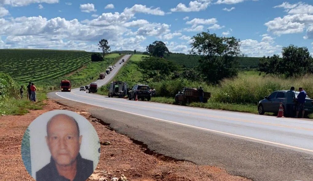 Nesse momento, o motorista de um caminhão prancha, que seguia no mesmo sentido da rodovia, não conseguiu desviar e acabou atingindo a traseira da motocicleta e as costas do idoso. Com o impacto, os dois ocupantes da moto caíram na pista.