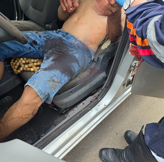 Após o fato, ferido, o homem entrou no veículo dele, um Fiat/Pálio, e saiu do local, indo para o centro da cidade onde recebeu socorro médico.