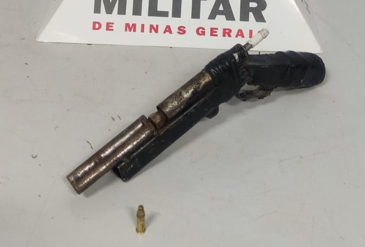 Durante diligências na residência do casal, após denúncia da própria filha da vítima, os policiais encontraram uma arma de fogo artesanal, tipo garrucha, com uma munição calibre 22 intacta, escondida em uma gaveta.