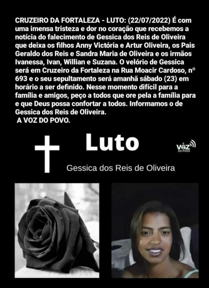 O detalhe é que apesar de ser natural da cidade de Patos de Minas, Géssica morava na cidade de Cruzeiro da Fortaleza, inclusive será sepultada na cidade de Cruzeiro da Fortaleza.