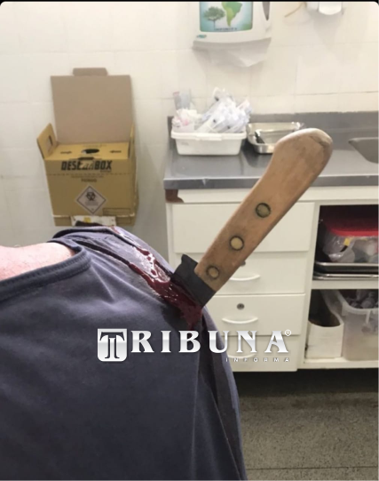 O idoso ficou com a faca cravada nas costas, sendo socorrido por familiares e encaminhado ao Pronto Socorro em da cidade.