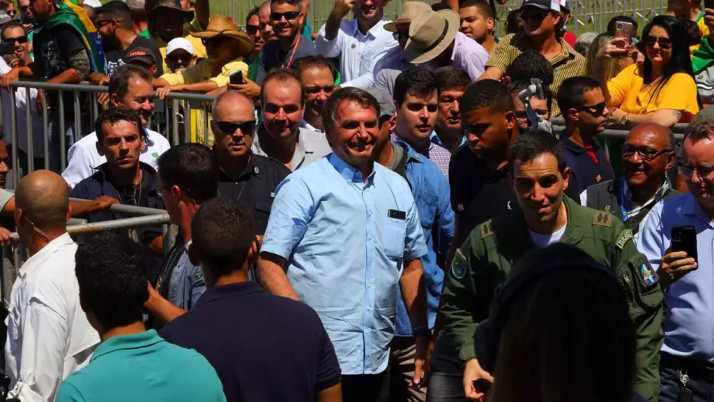A concentração de pessoas, no entanto, não se restringiu à carreata. Centenas de pinheirenses se posicionaram pelas ruas onde Bolsonaro passou, assim como no Estádio Pinicão, onde aconteceu a cerimônia de entrega de títulos.