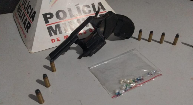 Os militares foram até a casa do suspeito que negou possuir uma arma. A mãe do suspeito autorizou a entrada dos militares na residência. Durante buscas no interior do imóvel, os policiais encontraram no banheiro um revólver calibre 32 carregado com quatro munições intactas. Também foram localizadas cinco munições de calibre 32 e uma de calibre 38.