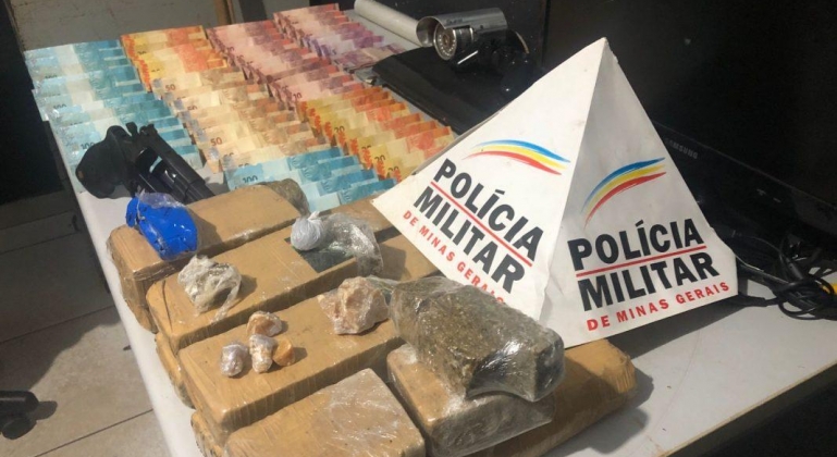 Diante do flagrante, os policiais foram até o local e realizaram buscas na casa. Durante as buscas, os policiais apreenderam cerca de nove quilos de maconha, aproximadamente 100 gramas de crack, um revólver Taurus calibre .38, R$ 2.677,50 reais em dinheiro, um videogame Playstation com um controle, um monitor, uma câmera de segurança e papel insulfilm, usado para embalar a droga.