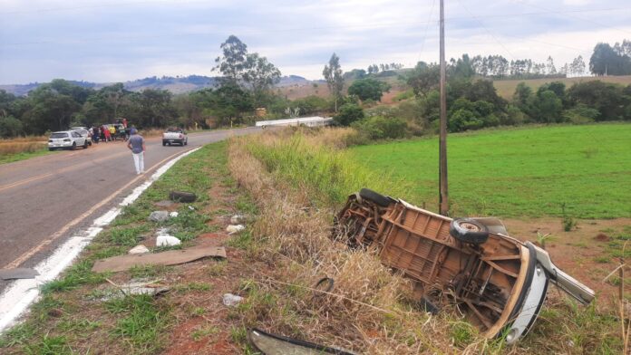Kombi tomba próximo ao Distrito de Pindaíbas e deixa motorista com ferimentos graves