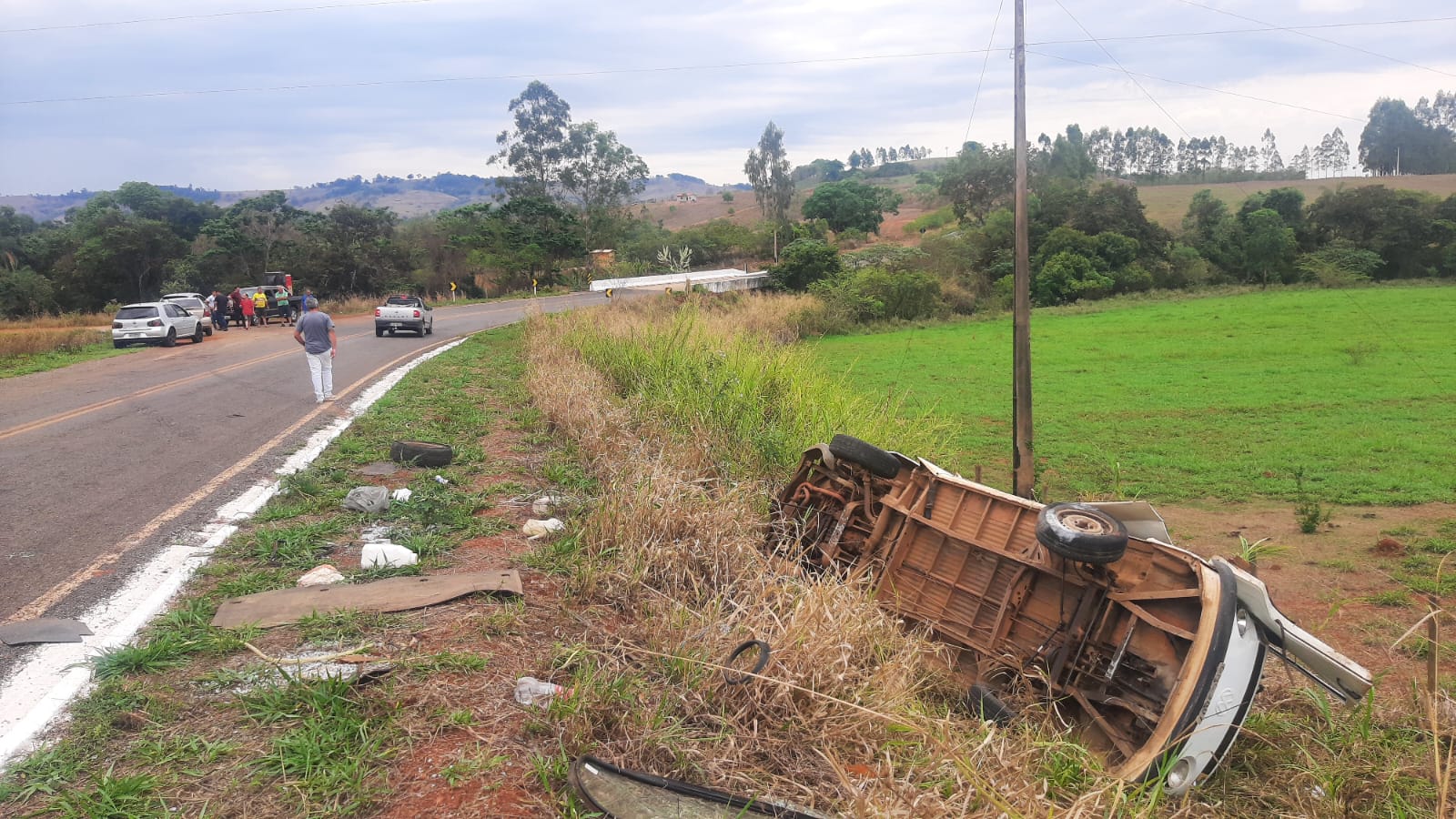O condutor conhecido como “Joaquim da Pastelaria de Pindaíbas”, reclamava de muitas dores pelo corpo e apresentava muitas escoriações. Ele estava com suspeitas de fraturas. A Kombi que ele conduzia parou tombada às margens da rodovia. Ocupantes de veículos que passavam pelo local ajudaram a socorrer o motorista.