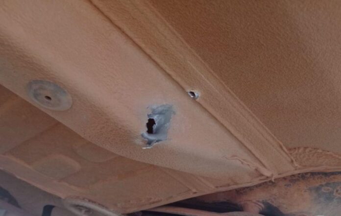 Já com parte do corpo dentro da viatura, a mulher tentou resistir à contenção do militar. Durante essa resistência, conseguiu alcançar um fuzil calibre 5,56 que estava sobre o banco. Em um ato imprudente, ao agarrar a arma, provocou um disparo dentro da viatura. O tiro transfixou o assoalho do veículo, atingindo a logarina do lado esquerdo.