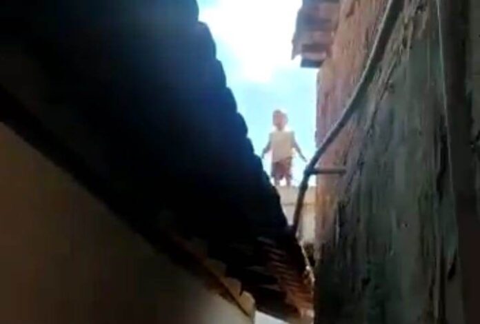 Lagoa Formosa: garotinho de um ano e dez meses sobe por escada e vai parar em cima de telhado de residência