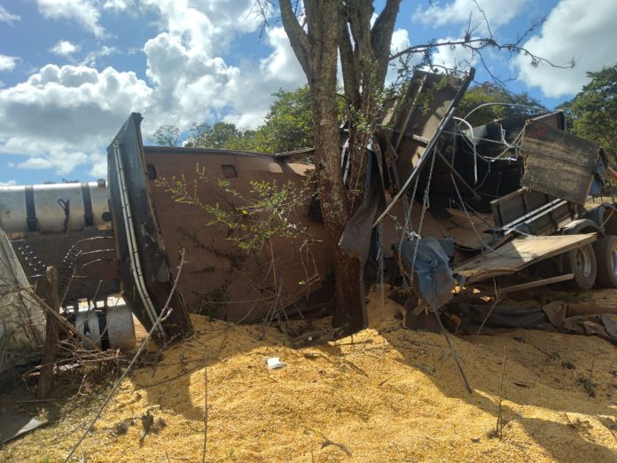 De acordo com informações do proprietário da carga, o condutor do bitrem havia deixado uma fazenda que fica próxima do local do acidente. Os semirreboques estavam carregados com aproximadamente 45 toneladas de milho a granel. A carga ficou espalhada em meio a uma pastagem e dentro da estrada vicinal. Algumas pessoas trabalhavam no local nesta manhã de sábado (27) para recuperar parte do produto.