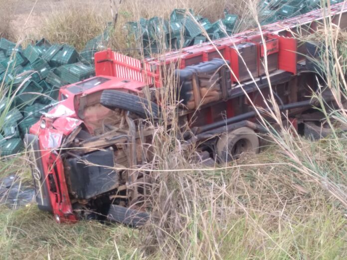 As caixas vazias que estavam na carroceria do caminhão ficaram espalhadas pelo matagal às margens da rodovia. Mesmo o motorista não tendo sofrido ferimentos graves, a cabine do veículo ficou praticamente destruída. Por ser um trecho que apresenta alto risco de acidentes, a pista deverá ser parcialmente interditada para a retirada do caminhão da ribanceira.