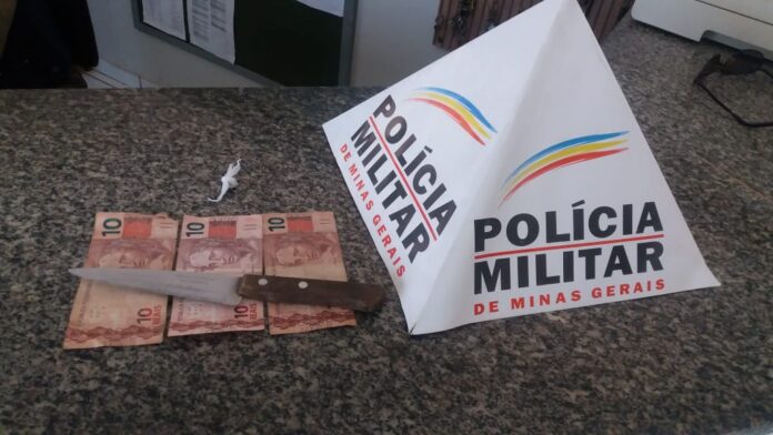 Ela estava com 4 pedras de crack, 30 reais em dinheiro e uma faca tipo peixeira