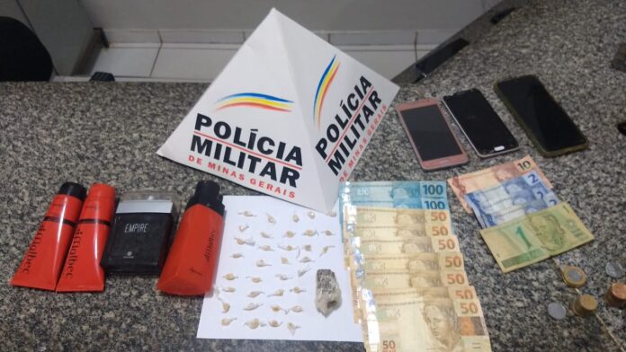 A Polícia Militar de Lagoa Formosa apreendeu na tarde desta terça-feira (05/10) pedras de crack, maconha, celulares, uma quantia em dinheiro e outros materiais de procedência duvidosa, que estavam em uma residência na Rua Zeca Emiliano, no Bairro Novo Horizonte. Um jovem de 21 anos, natural da cidade de Pirapora, foi detido e levado para a Delegacia de Polícia Civil suspeito de tráfico.