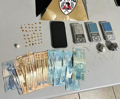Em continuidade à ação, os policiais foram até a residência do autor. No imóvel, foram apreendidas porções de crack já fracionadas e prontas para venda, além de balanças de precisão, utensílios com resquícios da droga, telefone celular e a quantia de R$ 2.044 em dinheiro.