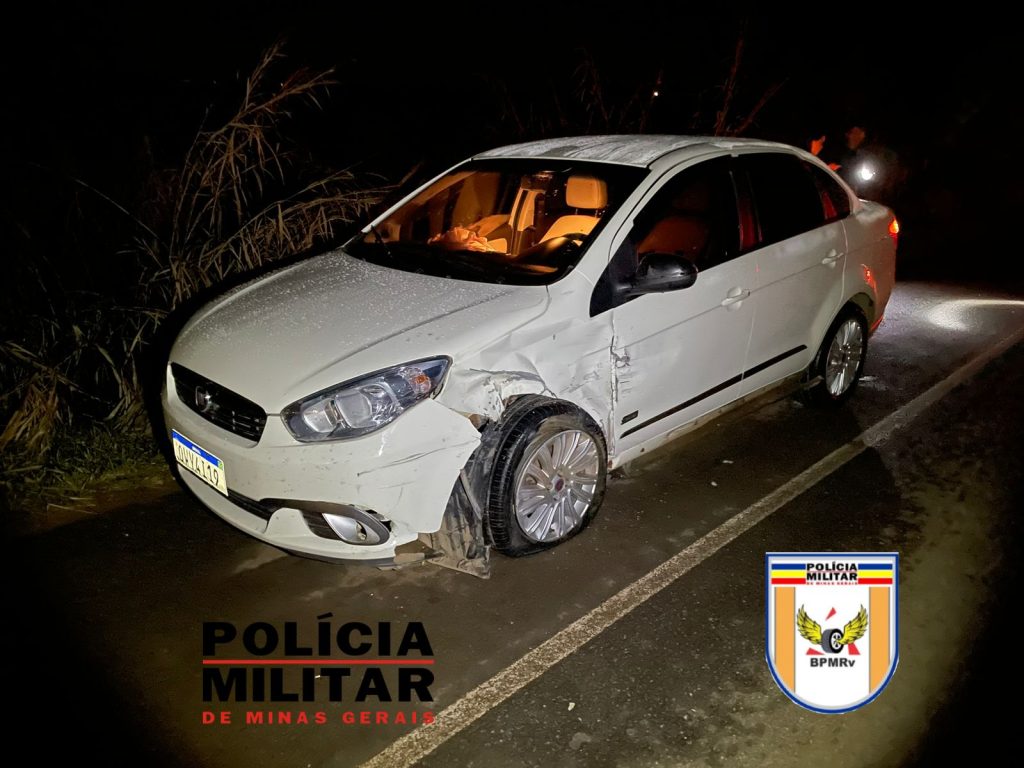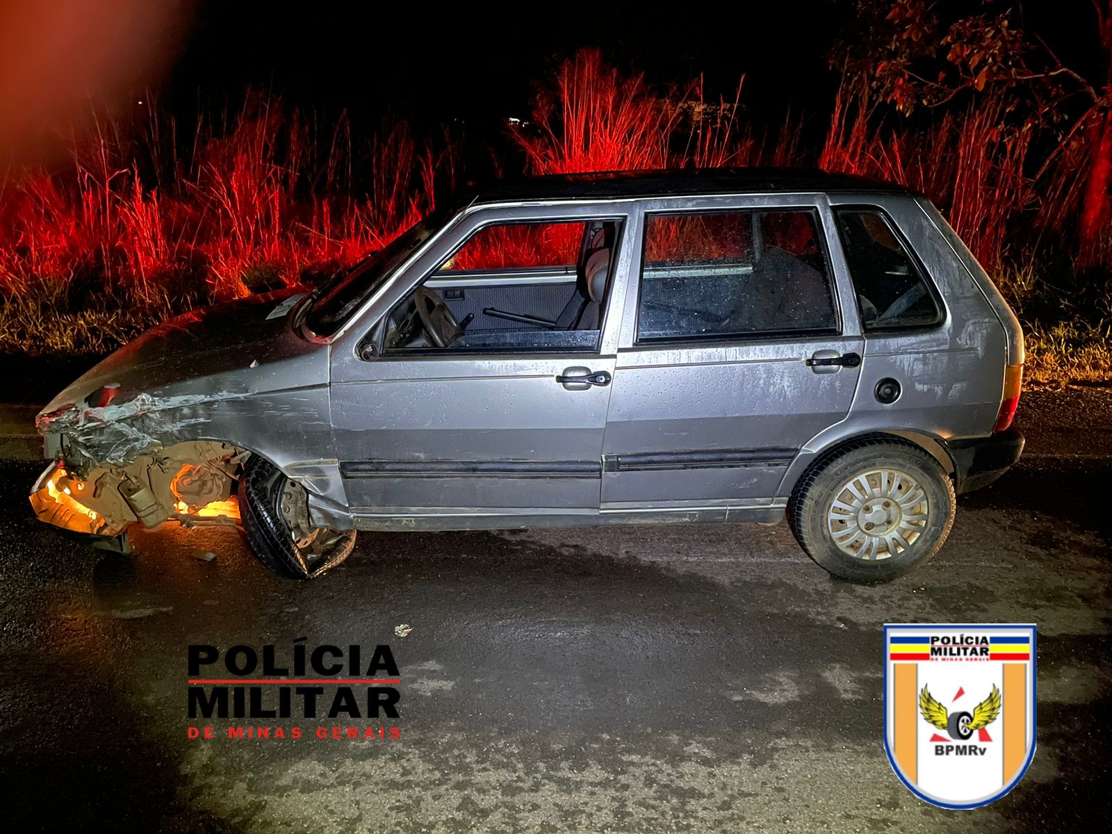 Após o impacto, o veículo Siena parou no acostamento. Já o Uno permaneceu sobre a pista de rolamento.