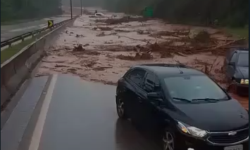 Em vídeos compartilhados pelas redes sociais é possível ver a rodovia tomada por lama. Assista: