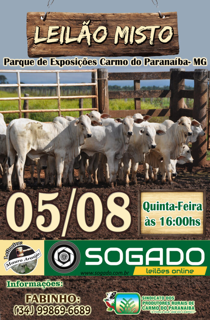 Leilão Misto acontece na próxima quinta-feira (05/08), em Carmo do Paranaíba