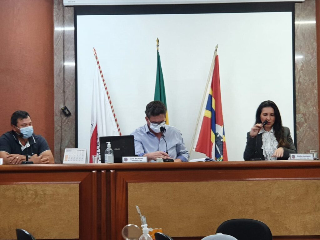 Mesa diretora, composta pelos vereadores Enivaldo, Luís Ricardo e Maira
