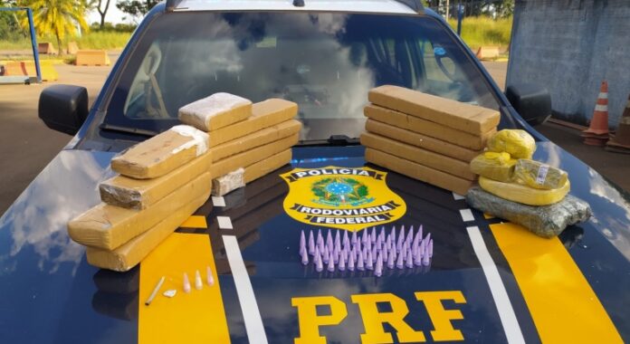 A Polícia Rodoviária Federal (PRF) prendeu uma mulher de 26 anos por tráfico de drogas. A abordagem aconteceu na BR-365, no município de Patos de Minas. A mãe viajava dentro de um ônibus de turismo, acompanhada com dois filhos.