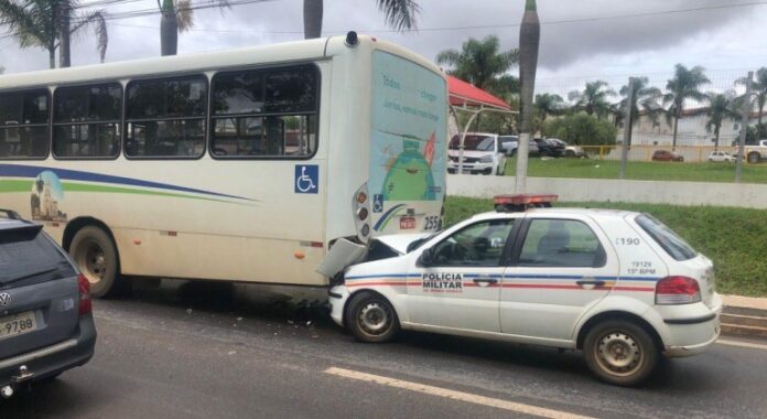Uma viatura da Polícia Militar bateu na traseira de um ônibus do transporte público urbano em Patos de Minas. O acidente aconteceu no início da tarde desta quinta-feira (30), na Avenida JK, no Bairro Jardim Andradas em Patos de Minas. O sargento de 40 anos, que conduzia a viatura, sofreu ferimentos leves.