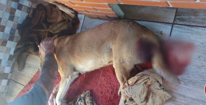 Na manhã deste sábado (27/08), um morador encontrou um cão na rua Zizinho Vida, com uma hemorragia na região do ânus. As características do ferimento indicam que alguém teria tentado introduzir algo no animal.