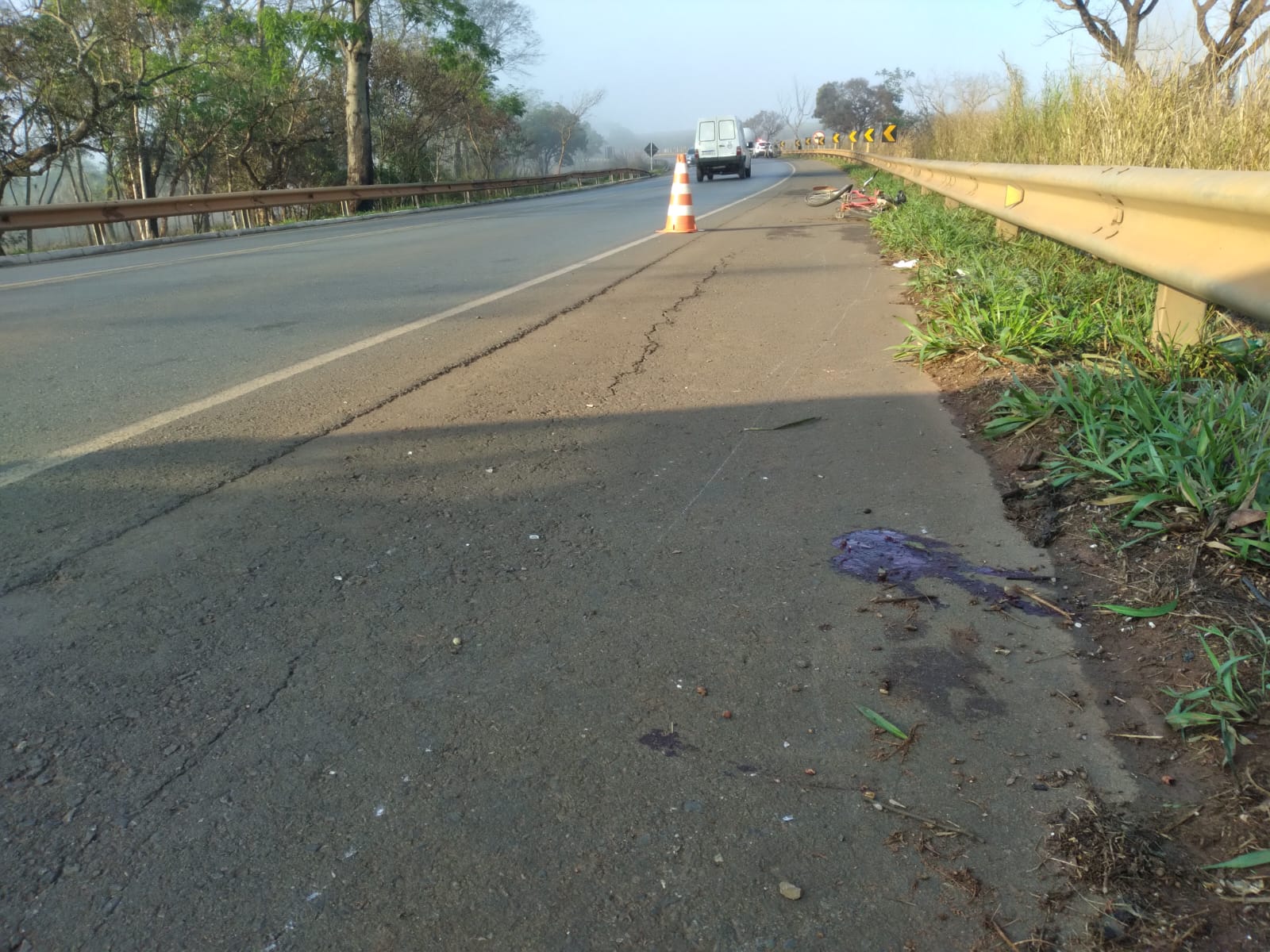 Com o impacto, o ciclista foi arremessado a uma distância de aproximadamente 50 metros. O motorista do caminhão pediu ajuda aos usuários da rodovia para acionar a Polícia Militar e o socorro médico.