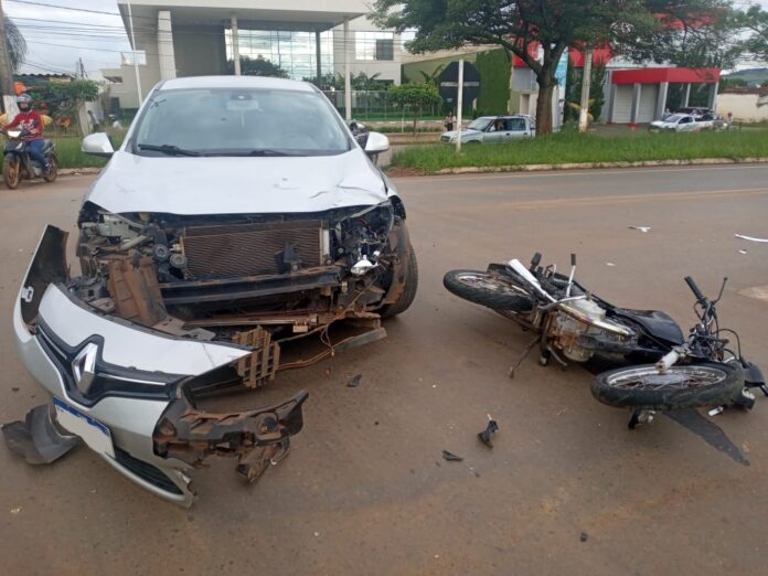 Motociclista é arremessado a 10 metros e fica ferido após colidir contra carro na avenida JK, em Patos de Minas