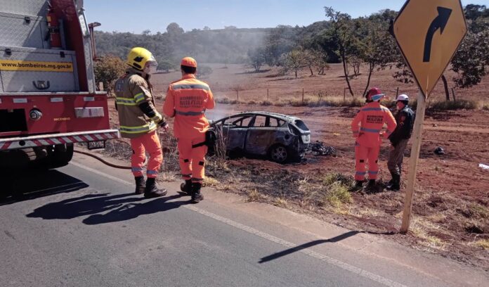 Uma colisão ocorrida na manhã desta segunda-feira (25/07) na MGC-354, no município de Presidente Olegário, tirou a vida de um motociclista. O acidente aconteceu no km 141, a aproximadamente 10 quilômetros da cidade e envolveu um automóvel Ford/Fiesta, cor branca, com placas de Vazante, e uma Honda/Titan. Com o impacto, os veículos pegaram fogo e foram consumidos pelas chamas. O Corpo de Bombeiros e um perito da Polícia Civil estiveram no local.
