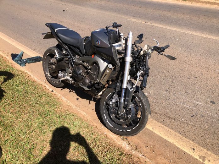 O motociclista não conseguiu frear e bateu na traseira do carro. Ele sofreu cortes no rosto, na perna esquerda e na virilha.