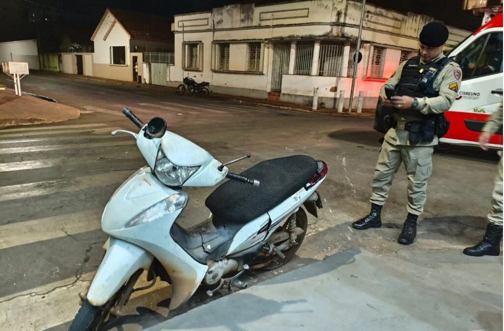 A Polícia Militar esteve no local e registrou um boletim de ocorrência. A motocicleta estava com a documentação irregular e foi removida para o depósito credenciado ao DETRAN/MG.