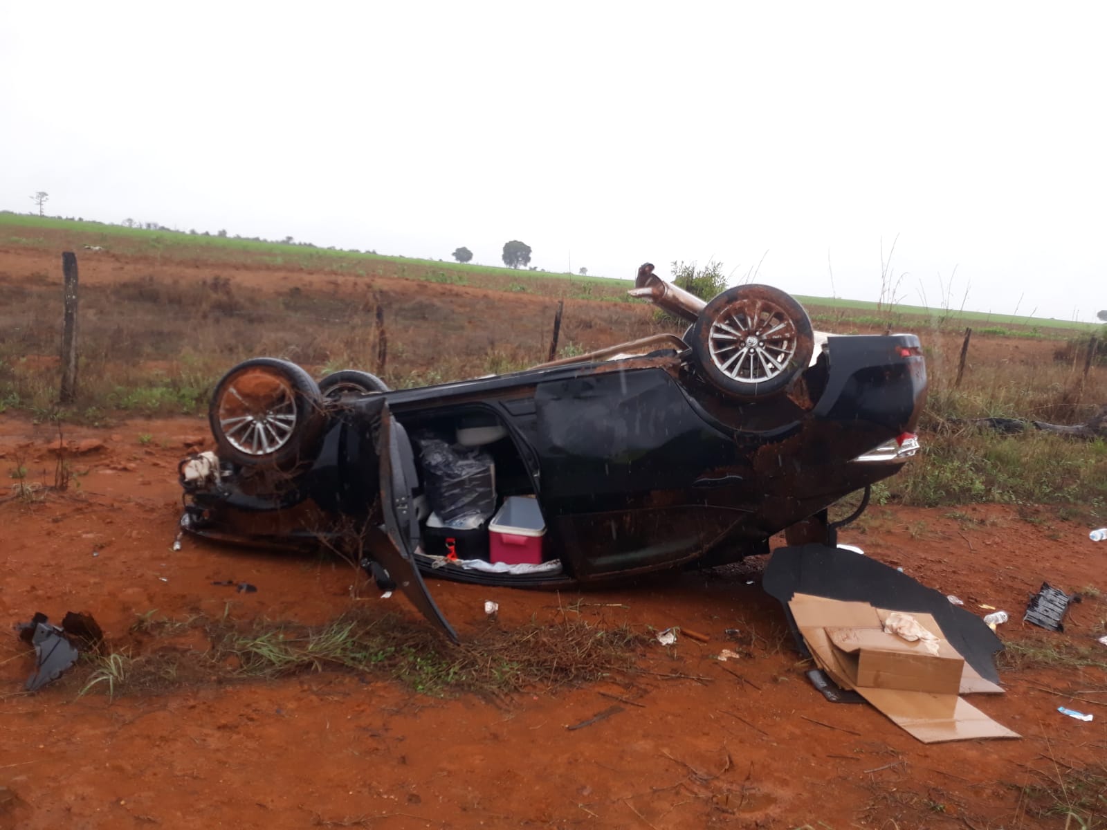 Motorista capota veículo na BR 146; chuva teria sido causa do acidente