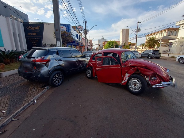 Um motorista de 60 anos, num VW/Fusca, bateu contra um carro estacionado na Rua Major Gote, centro de Patos de Minas, na tarde deste sábado (12/08).