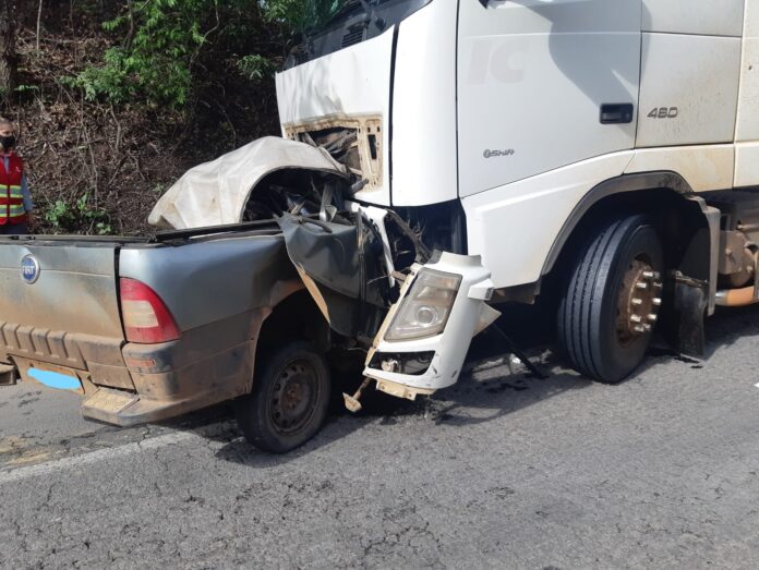 Conforme levantamentos preliminares, a Fiat Strada teria invadido a contramão de direção colidindo frontalmente com um Volvo FH que seguia pela rodovia no sentido decrescente.