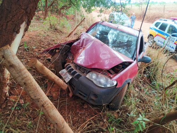 Motorista embriagado colide veículo contra árvore em estrada vicinal de Patos de Minas