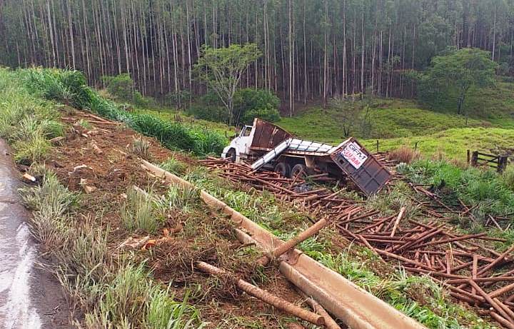 Bem no início da manhã desta quarta-feira (07/12), um caminhão carregado com toras de eucalipto saiu da pista e capotou no km 393 da BR-365, local conhecido como “Curva da Morte”, entre Patos de Minas e Varjão de Minas. O motorista, de 28, sofreu ferimentos leves. Não houve interdição da pista.