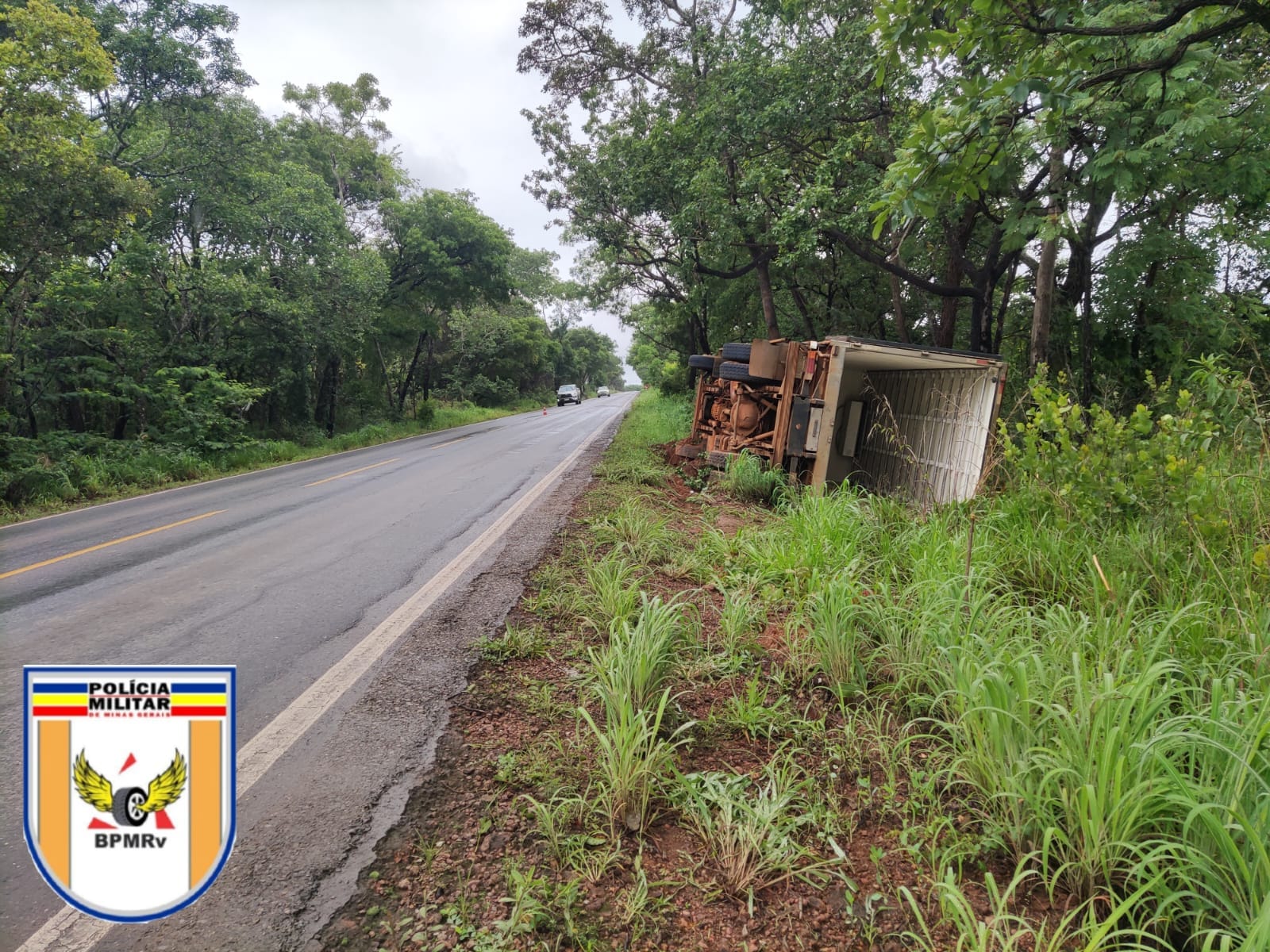 Segundo informações da Polícia Militar Rodoviária (PMR), o motorista do caminhão M.Benz/Atron, emplacado em Patos de Minas, relatou que seguia sentido João Pinheiro a Presidente Olegário e a pista estar molhada, devido a uma forte chuva. Com isso, o veículo derrapou e ele perdeu o controle direcional, saiu da pista para o lado direito e tombou.