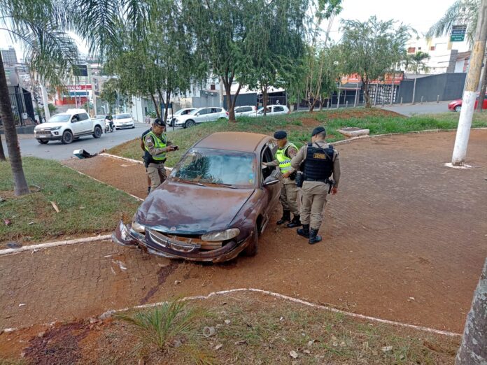 Motorista foge após invadir praça em rotatória na cidade de Patos de Minas