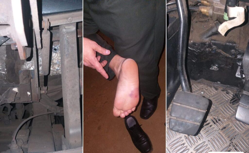 O disparo atravessou a lataria e acertou o solado do sapato do motorista, que imediatamente parou o veículo. Ele sofreu apenas um ferimento superficial no pé.