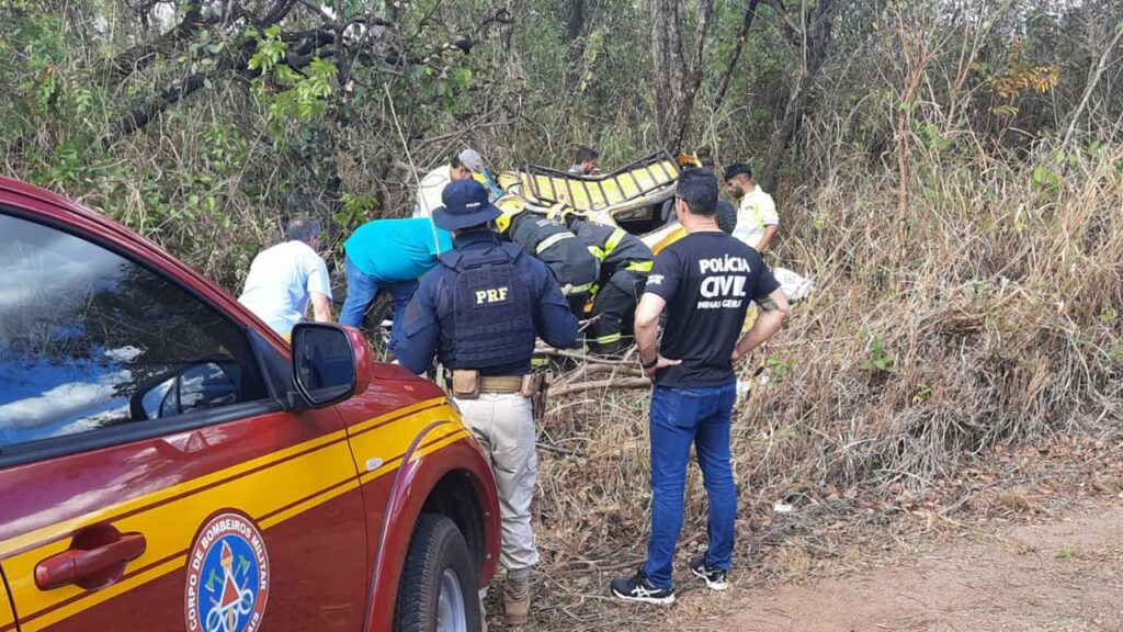 Motorista morre após veículo sair da pista, capotar e colidir violentamente em árvore na BR 040
