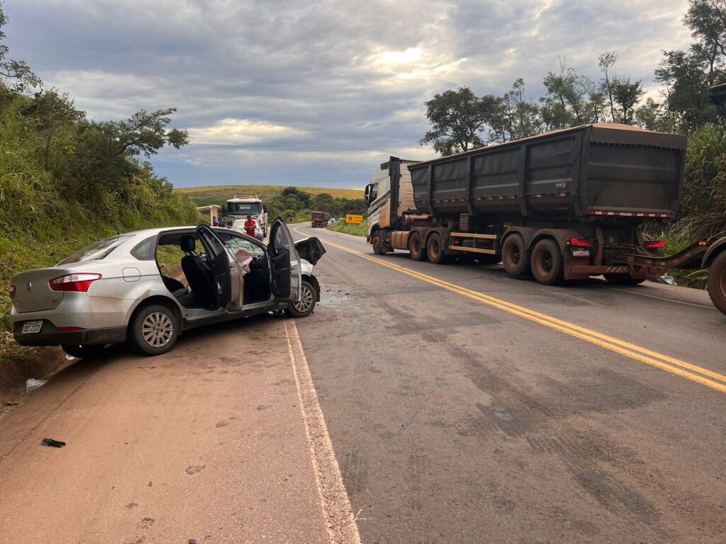 A Polícia Militar Rodoviária registrou na tarde de ontem (14) um grave acidente. Era por volta das 16h15 quando ocorreu uma colisão lateral entre um Rodotrem e um veículo de passeio no Km 651 da BR 262, município de Ibiá.