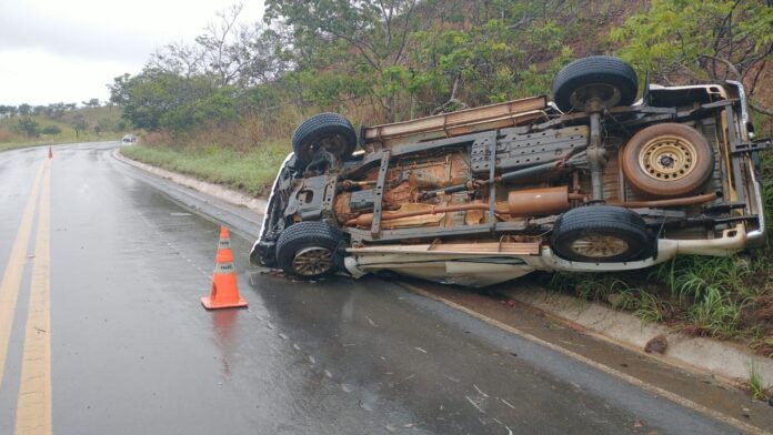 Motorista perde controle direcional durante aquaplanagem e tomba caminhonete na MGC-354 no município de Lagamar